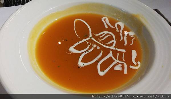 一般我們在外面餐廳喝到的南瓜濃湯都是很濃郁的那種,但這裡的有點水水的,沒有香濃的感覺所以不是很喜歡