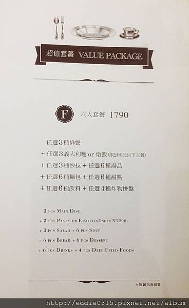 F套餐 1790元,為六人套餐