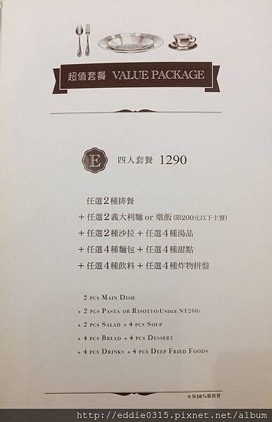 E套餐 1290元,為四人套餐