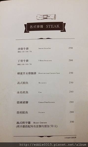 牛排都可以選擇喜歡的熟度喔!另外,除了牛排還是有很多不同的排餐可以選擇
