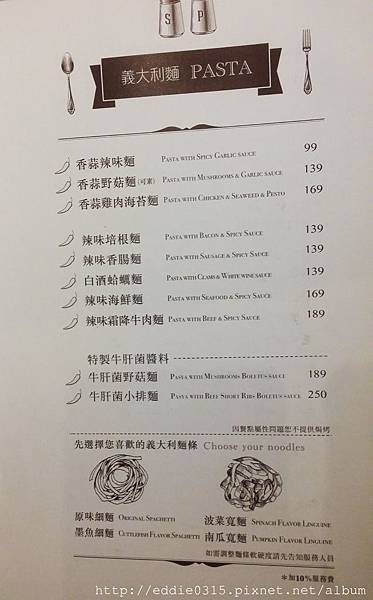 這間很特別的點就是義大利麵是可以選擇義大利麵條的喔!!不像其他地方選的是筆管麵或細麵等等,而是口味有所不同
