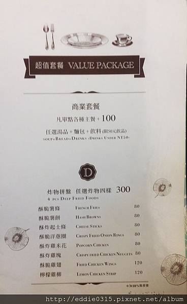 商業套餐,單點各種主餐+100元即可以任選湯品+麵包+飲料