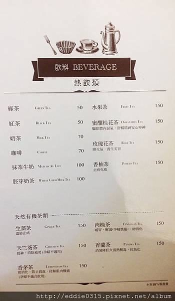 熱飲類多了天然有機茶類,瞬間多了養生的感覺