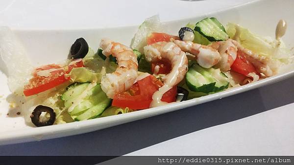 原以為醬汁是偏果醋醬那種,沒想到是混合沙拉醬的柚香醬,沙拉醬的柚香不明顯讓人有點失望,但蝦子吃起來很Q彈不會有冷凍蝦那種ㄏㄨㄏㄨ的感覺