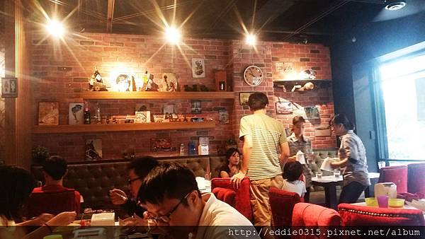 一進門店內還是滿滿的人,右手邊的牆走的是一個"紅磚風",有種童話故事三隻小豬的即視感,上面擺著一些有趣的裝飾品
