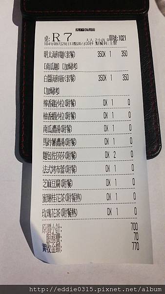這長長一張就是當天的帳單(需要加10%服務費喔!)